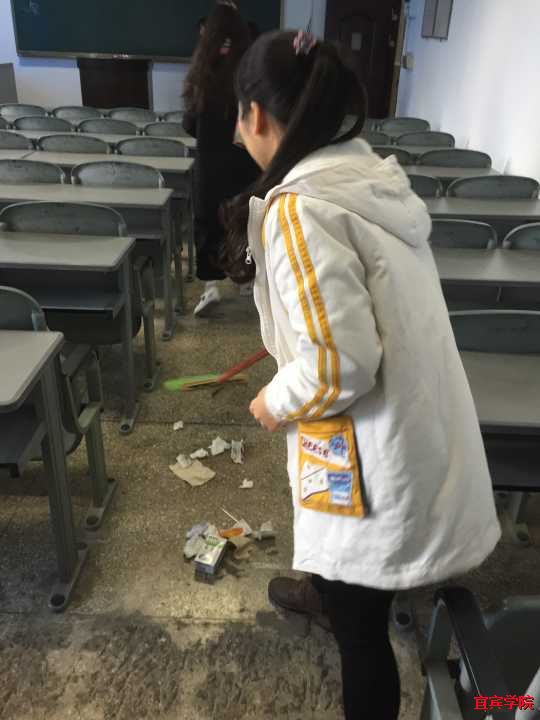 活动一开始,学员们先在二教底楼集合,负责人分配了工作区域和任务,安排部分学员负责清扫教室抽屉里的垃圾,另外的学员负责打扫地面卫生。活动过程中,大家积极性很高,互相帮助,活动后大家集体合影,留作纪念,为这次社会实践活动划上了完美的句号。