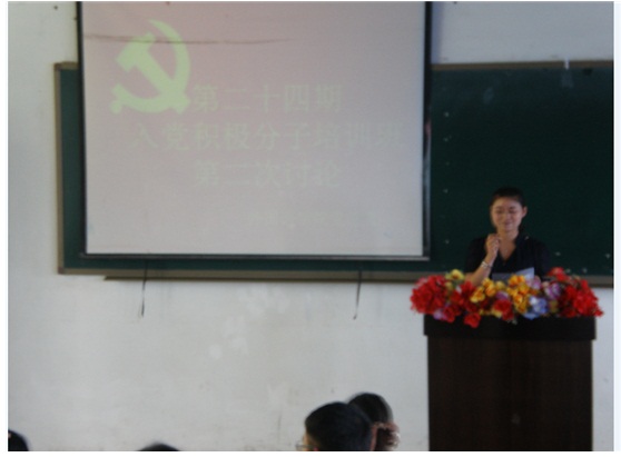 2013年5月22日中午12:45,外国语学院第二十四期入党积极分子培训班第二次讨论在二教502准时进行。出席此次讨论的领导和老师有外国语学院2011、2012级学生党支部书记、2012级1、2班班主任朱静老师,外国语学院2012级3、4班班主任曾融老师和外国语学院党总支委员、2012级7班班主任邓超文老师,此次讨论由外国语学院党总秘书处副秘书长洪艳主持。