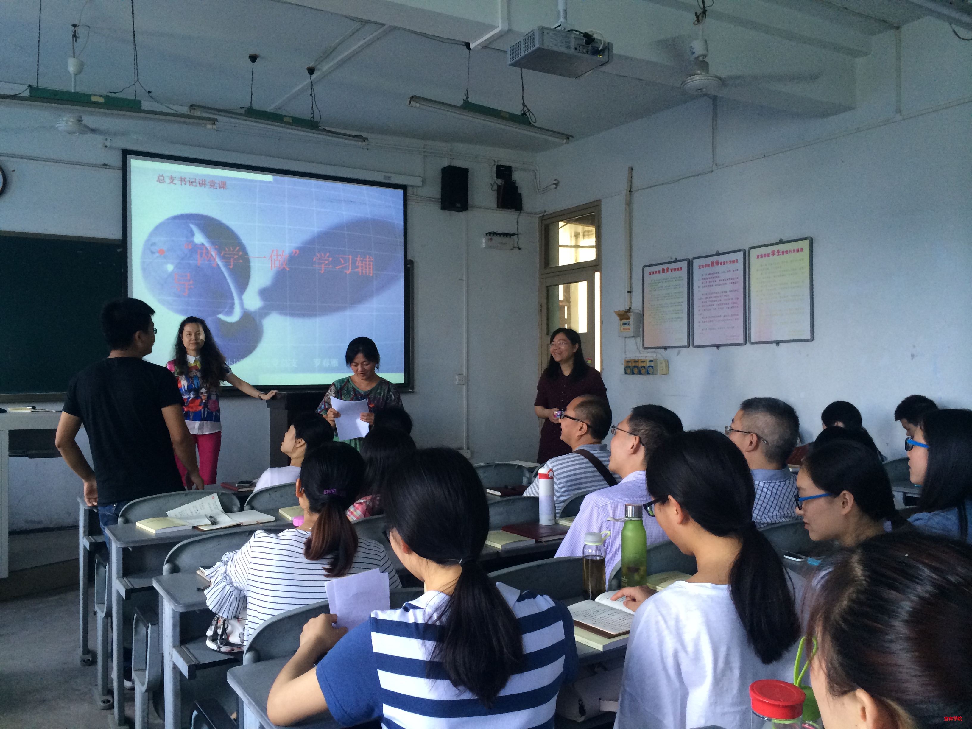 为深入贯彻“两学一做”学习教育的精神,教育和引导教师党员和学生党员坚定理想信念,宜宾学院外国语学院党总支于2016年6月23日下午14:30在二教502组织外国语学院教师党支部、2013级英语、英语教育专业学生党支部和其他支部的组织委员、宣传委员开展了“两学一做”学习教育知识竞赛活动。