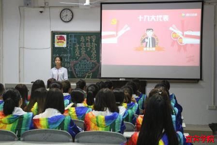 (本报讯)党的十九大是在我国全面建成小康社会决胜阶段召开的一次十分重要的代表大会,是党和国家政治生活中的一件大事。因此,为响应团委号召,为了让我院团员更深刻地学习习近平总书记讲话精神,从而以更好的风貌向党中央看齐,向习近平总书记看齐,更加紧密地团结在以习近平同志为核心的党中央周围,外国语学院于2017年9月26日下午18:30-19:10在第二教学楼开展了主题为“ 学习习近平总书记讲话 喜迎党的十九大”的团组织生活活动。