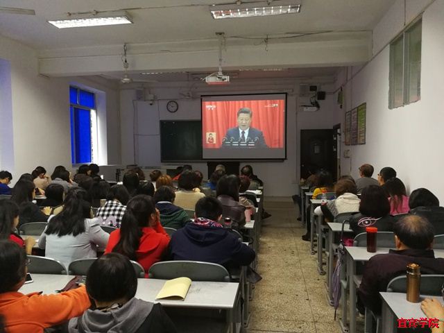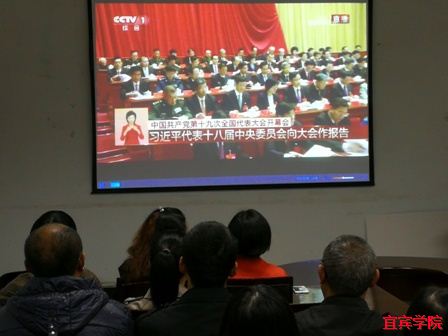 10月18日上午9:00,外国语学院组织党总支委员、科级以上干部和部分党员师生集中收看了中国共产党第十九次全国代表大会开幕盛况,认真聆听习近平总书记在大会上的报告。