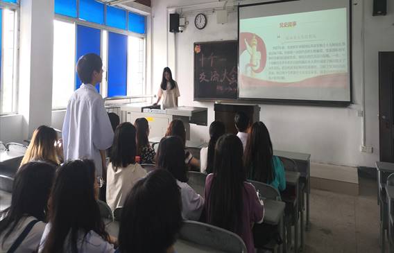 为热烈庆祝建党100周年华诞,重温党的光辉历史,缅怀党的丰功伟绩,牢记党的初心使命,继承和发扬党的光荣传统和优良作风,激发广同学们爱党爱国的热情, 2021年5月20日,由国际教育学部党总支副书记林顺虎老师在第二教学楼408教室开展了“学党史、感党恩、跟党走”的“十个一”活动小组交流会。团支书熊杰、少数民族同学韩瑞畴、李永娜以及2019级1班全体同学参加交流会。