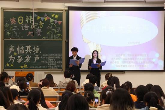 为了加强对学生个性化的指导,提高语言的实际应用能力,宜宾学院国际教育学部于2023年3月7日在临港校区二期八号楼D栋209教室举办了“声临其境•为爱发声”英日韩三语配音大赛。国际教育学部的32个小组参加了比赛。