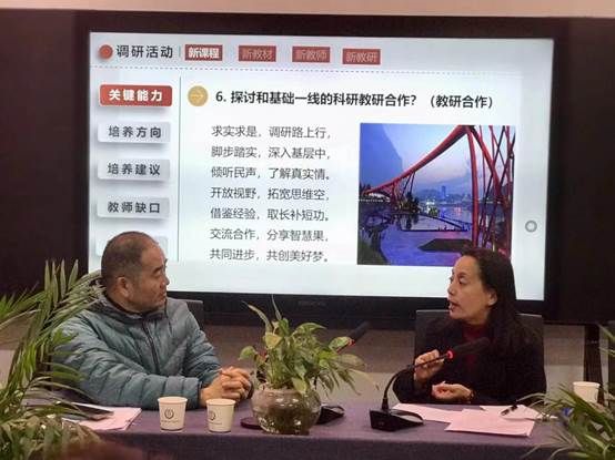 黄建华就学部人才培养方案及学部与基础一线的科研教研合作提出中肯建议。其他教研员提出要在专业基本功及教学能力上,尤其是课堂驾驭能力,抗挫能力,教学法积累等方面加强培养。