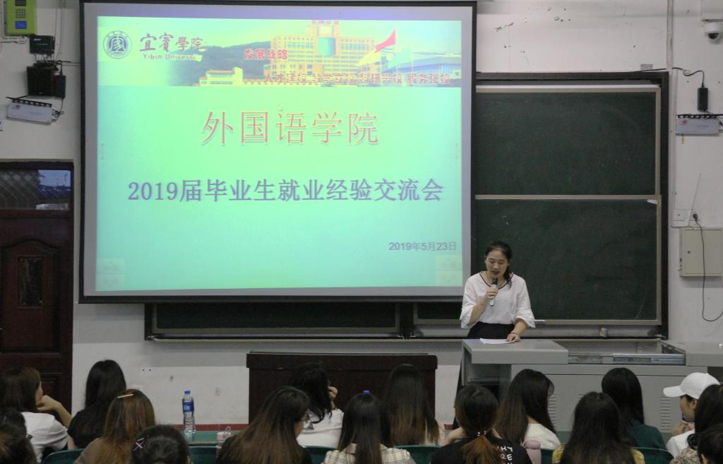 为让我院学子更加了解目前社会的就业形势,明确自己的奋斗目标,外国语学院借助广大实习毕业生回校之际,于5月23号19:00在硕勋楼A座202教室开展了毕业生就业经验交流会,邀请了本届优秀毕业生代表罗成良向同学们分享她在东辰国际天立学校的就业经验。