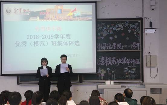 为促进学院学风建设,加强班级间的学习交流,增强班级的凝聚力,提高班级整体建设,2019年11月21日13:00,外国语学院在第三教学楼A座202教室举行了一年一度的优秀班级评选展示活动。外国语学院党政主要负责人、辅导员、学生代表担任评选此次展示活动评委。