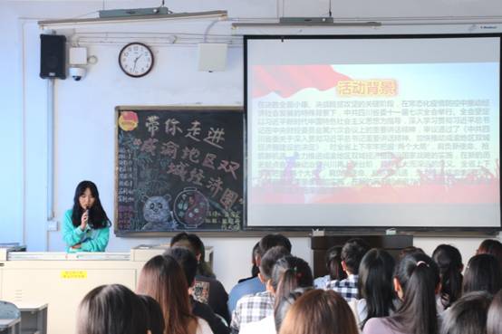 本次团组织生活各班学生共同参与学习,在各班主持人的引导下有序进行。活动伊始,在主持人的带领下团员们集体起立合唱共青团团歌,歌声嘹亮,气势宏伟。紧接着,各班主持人通过放映课件、提问讨论的方式,让大家更直观了解到推动“双城记”经济圈建设。