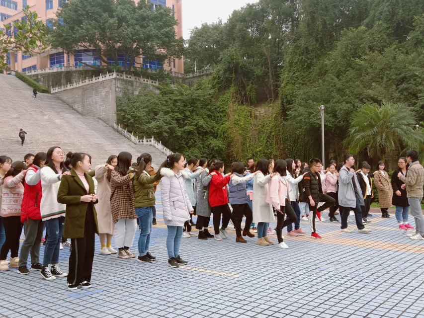 2018年11月9号12点50分外国语学院第三十五期入党积极分子培训班团队合作活动在青春广场举行。参与本次活动的成员是党校外国语学院第三十五期入党积极分子培训班全体学员。