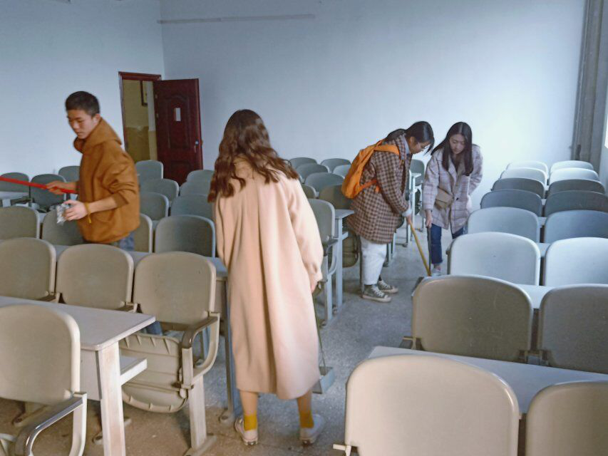 活动开始前,全体学员都早早地来到了青春广场集合。之后活动负责人开始为每一位分配本次社会实践活动的任务。实践活动开始后,全体学员都迅速地拿起扫把和簸箕前往二教4、5两层楼,所有学员都积极参与,在活动中贡献自己的一份力量。全体学员们自由组队,分队打扫,每个学员劳动的身影成为了一道道靓丽的风景线。活动结束后,全体学员们将扫把和簸箕放回原处,尽管每个学员的头上都留下了汗水,但劳动之后的快乐却留在了每一位学员的心目中。