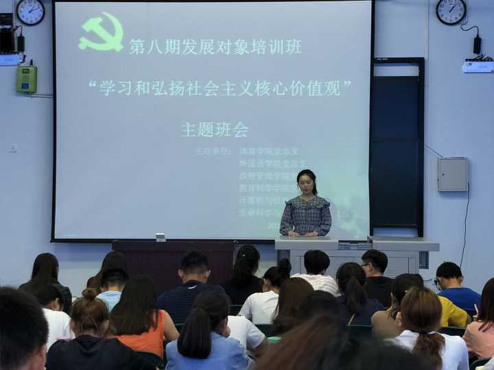 各发展对象培训班学员在本次班会活动学习中不仅进一步了解了社会主义核心价值观,同时思考应该如何努力成为党的优秀接班人,发扬党的精神。最后,第八期发展对象培训班“学习和弘扬社会主义核心价值观”主题班会活动在学员们的积极参与中圆满结束。