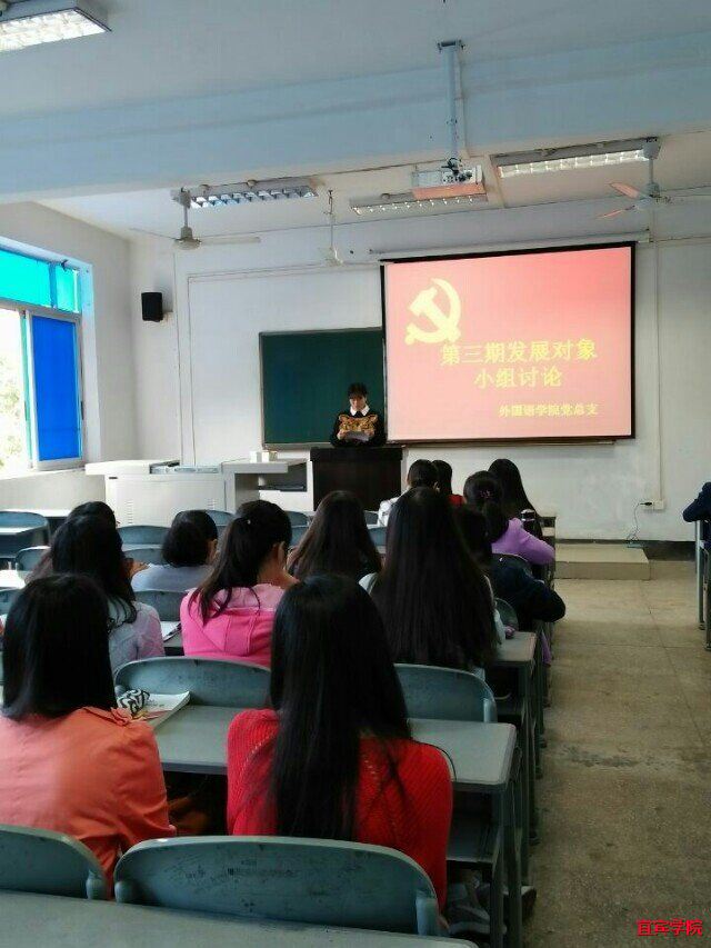 2015年10月30日中午12点40分,外国语学院第三期发展对象小组讨论在二教楼416,408教室顺利进行。外国语学院副院长赵亚玲,外国语学院党总支副书记温萍书记以及所有第三期党员发展对象就“如何提高自身的党性修养”展开了讨论。