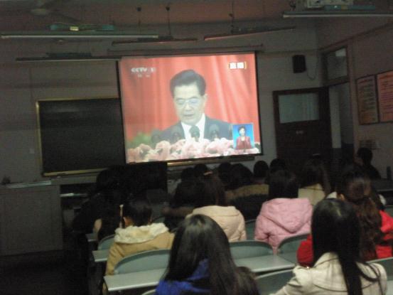 2012年11月13日下午19:00在二教513进行了由外国语学院党总支组织的“认真学习党的十八大精神”的活动。参加本次学习活动的领导及老师有外国语学院党总支罗春雁书记,外国语学院党总支委员赵亚玲、杜云老师等;参加的学生有在校的预备党员和党员。
