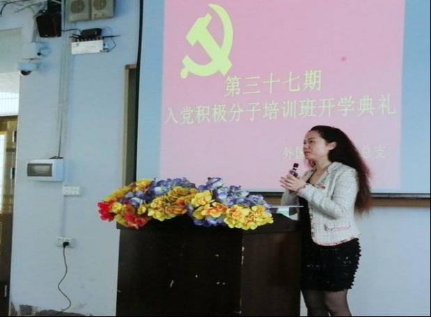 2019年10月18日中午12点50分,党校第三十七期入党积极分子培训班外国语学院开学典礼在铭志楼502教室举行。党校第三十七期入党积极分子培训班班主任刘明海、外国语学院党总支书记罗春雁、正处级组织员蒋泓洁、副书记温萍、副院长赵亚玲、党总支委员杜云、第一学生党支部书记袁超和第二学生党支部书记魏春梅参加了开学典礼。
