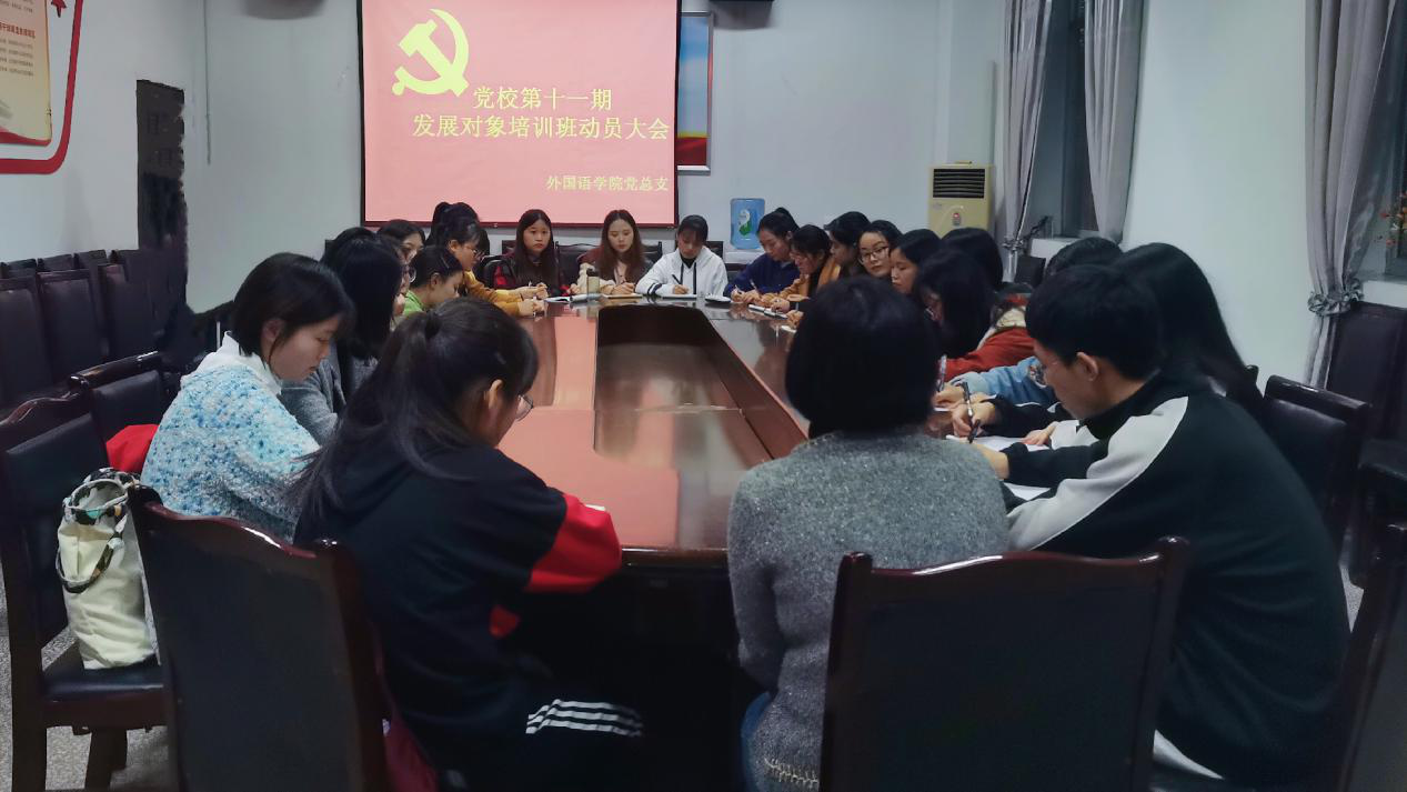 2019年11月4日16点10分,党校第十一期党员发展对象培训班外国语学院动员会在铭志楼外国语学院会议室召开。