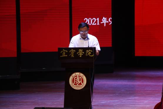 开学典礼在庄严隆重的国歌声中拉开序幕。首先,学部部长杨南翎发表致辞。他向同学们介绍了宜宾学院的办学历史、概况,重点介绍了国际教育学部的学科建设、师资队伍以及“创新型应用人才”的人才培养目标。他勉励同学们追逐梦想,不负青春韶华,以学业成功、体魄强健、心灵纯净回报自己和父母;牢记初心使命,不负时代担当,以丰富的知识、高超的本领、强烈的责任心,回报时代和社会;砥砺奋进,不负党和人民期望,以开拓创新的气魄、以志存高远的境界、以扎根祖国大地之坚韧,回报党的教导人民的培育!
