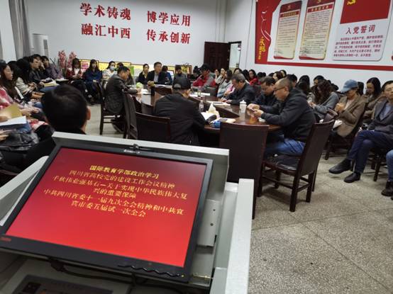 2021年10月27日,国际教育学部在政治学习时间组织全体教职工学习四川省高校党的建设工作会议精神。正处级组织员袁成钢领学了会议报道和相关精神,要求大家将会议精神的贯彻落实同各自的具体工作结合起来,牢记立德树人使命,坚持用习近平新时代中国特色社会主义思想为指导,为党育人,为国育才,积极努力为培养社会主义合格建设者和可靠接班人贡献力量。