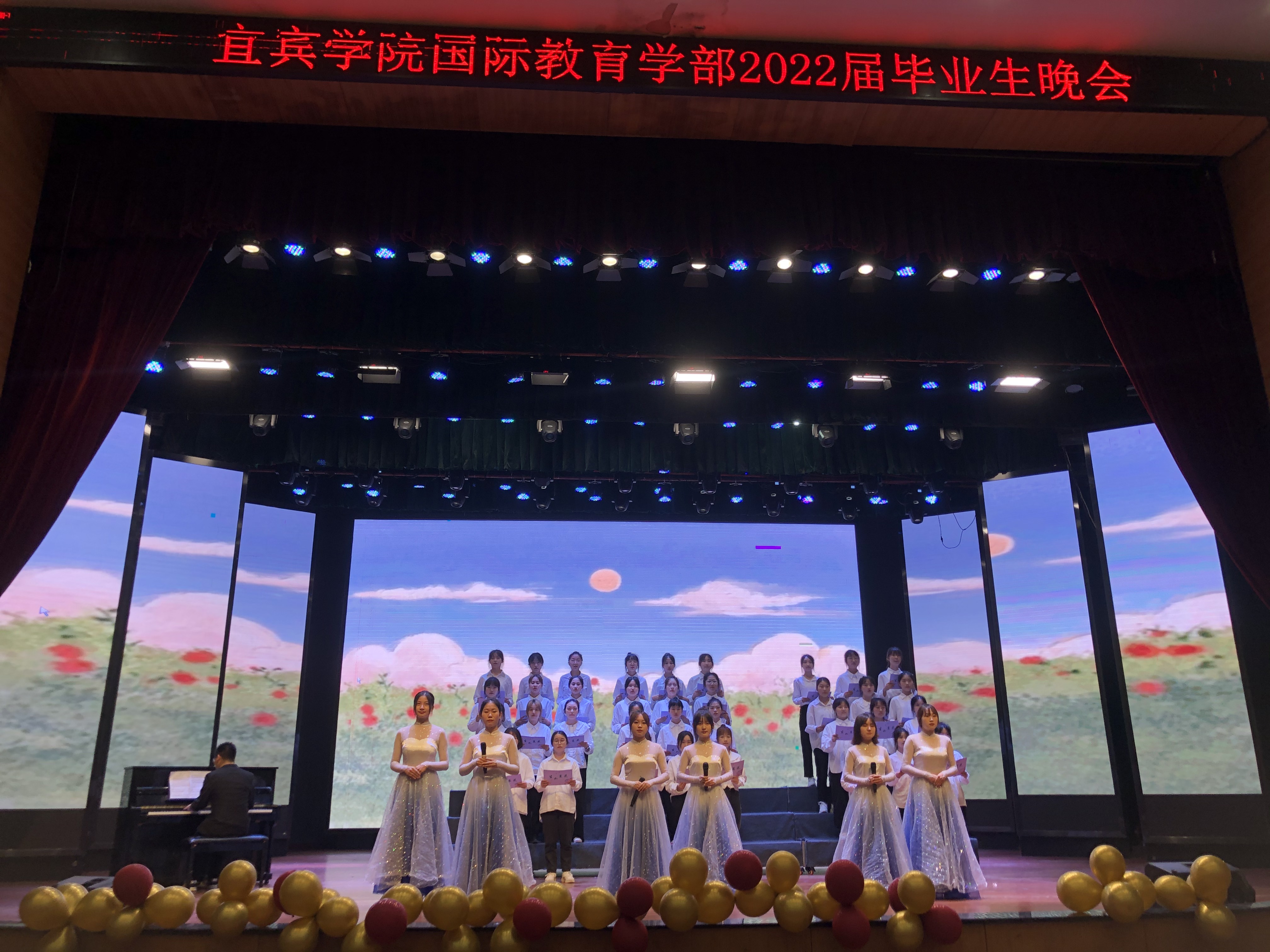 扬帆征程路,漫途终有期。宜宾学院国际教育学部“恰同学少年,续青春华章”2022届毕业生晚会于5月25日晚在三平台演播厅以录播的形式开展。参加此次晚会的有国际教育学部党总支书记罗春雁等老师以及所有参演同学。