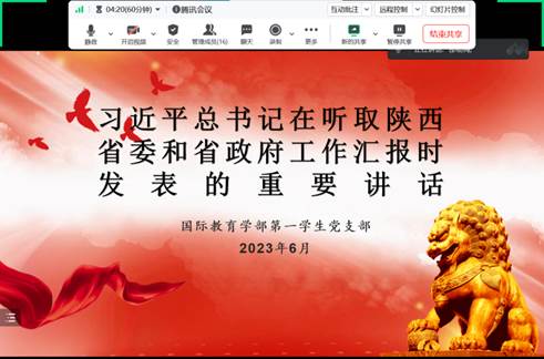 为深入开展学习贯彻习近平新时代中国特色社会主义思想主题教育,2023年6月7日,国际教育学部第一学生党支部以腾讯会议的形式开展了党组织生活会。本次组织生活会由支部书记邵杨梅主持,支部全体党员参会。