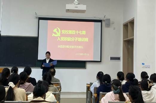 2024年10月8日,党委党校第四十七期入党积极分子培训班开班典礼在公共教学楼二8A102教室举行。外国语学院党委副书记(主持工作)林顺虎、副处级组织员邱军、学生党支部书记肖月晴等老师出席,培训班全体学员参加了开班典礼。