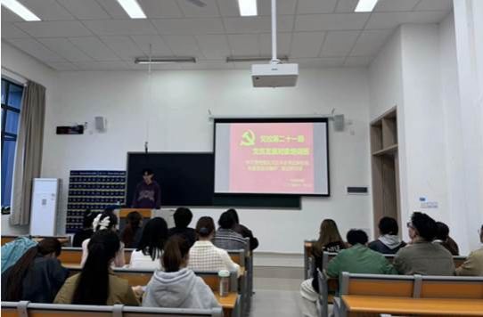 11月8日,培训班“学习贯彻习近平总书记来校视察重要指导精神”理论研讨课在临港校区8A102教室举行主题理论研讨课,外国语学院副处级组织员邱军、学生党支部书记肖月晴到场指导。