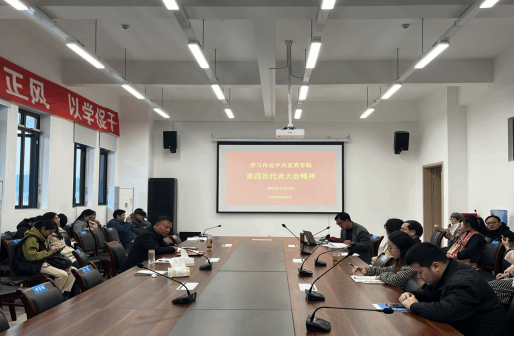 为深入学习贯彻学校第四次党代会精神,将学校重要决策部署全面准确地传达给学院每一位教职员工,凝心聚力,为学校建设和学院发展注入新动力,12月4日下午,外国语学院党委在学院412会议室召开全体教职工大会,专题学习传达学校第四次党代会精神。会议由外国语学院党委副书记林顺虎(主持工作)主持。
