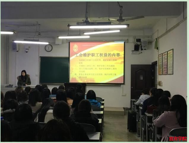 为提高同学们对工会组织的认识,增强其维权意识和工会意识,2017年12月10日下午14:30在2教513教室,外国语学院为2018届毕业生组织开展了题为“入工会,维权益”的知识宣讲和知识竞赛活动。王星老师主持了此次活动。