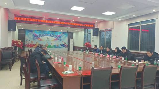 2021年12月10日下午,宜宾学院国际教育学部部长杨南翎、党总支副书记林顺虎一行前往到叙州区泥溪镇初级中学校开展英语专业人才培养方案合理性评价调研工作,调研活动以座谈会的形式展开,泥溪镇中心校校长张荣、泥溪镇初级中学校校长冯坤、年级主任、泥溪镇初级中学校宜宾学院英语专业毕业一线英语教师参与了此次座谈会。