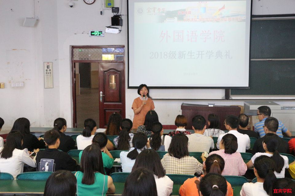 入学典礼由罗书记主持。首先,院长杨南翎代表外国语学院作了充满激情的新学年致辞,介绍了学校的基本情况以及本专业的就业前景,为学生们讲解专业知识学习,以便大家更好地了解专业、热爱专业,树立正确的专业思想,掌握有效的学习方法,形成良好的学风。然后,杨院长强调了教育的重要性,学生课堂管理,提高课程教学质量,以及本科毕业论文质量管理。最后,杨院长鼓励学生在学习课本知识增强专业技能的同时,多涉猎其他方面的书籍,合理分配课余时间,拓展视野,提高充实自身本领,让大学生活过得丰富多彩。