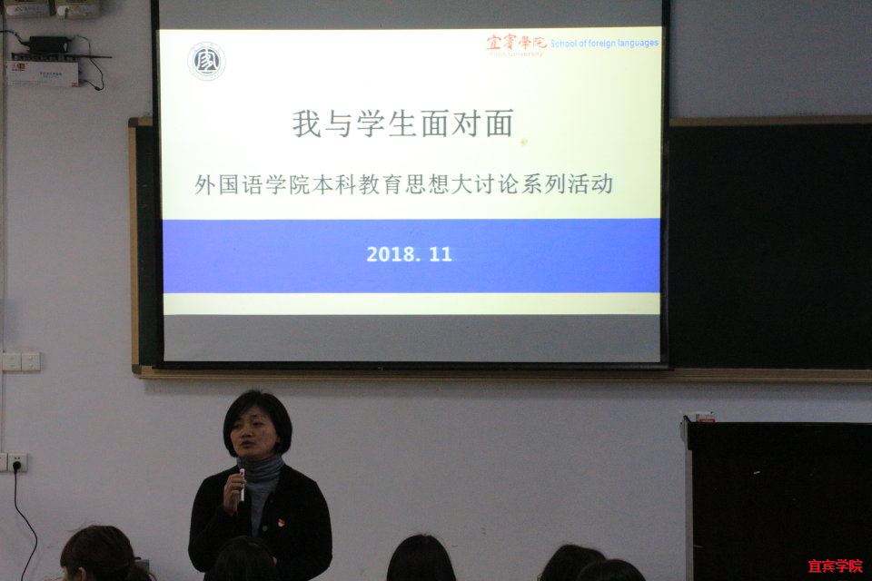 (本报讯)为贯彻落实全国高校思想政治工作会议精神,主动适应高等教育发展的新形势、新要求,进一步巩固人才培养中心地位,努力提升人才培养质量,外国语学院于2018年11月14日下午在第二教学楼502教室开展了本科教育思想大讨论系列活动——我与学生面对面,本次活动由外国语学院党总支书记罗春雁主持,外国语学院全体老师及部分学生参与了此次活动。