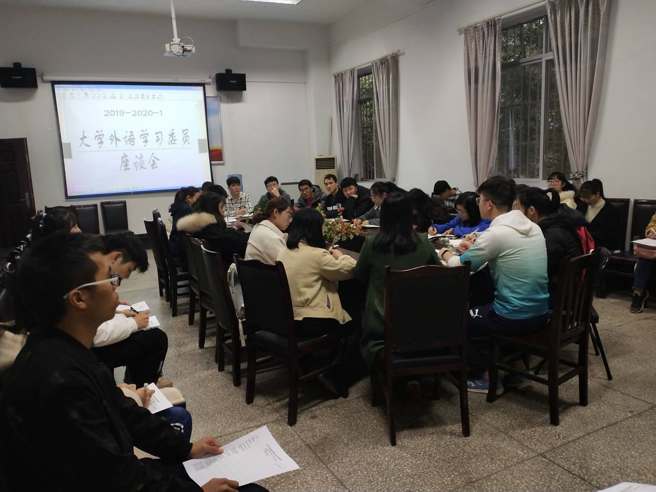 座谈会持续了一个小时,同学们畅所欲言,认真细致地反馈了各位老师上课的情况,谈了对大学外语的认知和期望。
