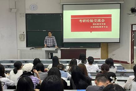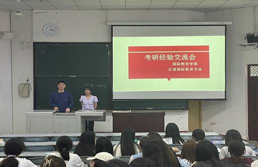 为了进一步给本专业学生指明考研方向,解答疑惑,2021年5月21日下午两点半,国际教育学部汉语国际专业18、19级学生在三教B座101教室开展了时长为一个半小时的考研经验交流会。国际教育学部副部长罗红昌致开场辞,邀请张宇锋学长和丁佳仪学姐向同学们介绍他们在考研期间的一些经验和考研后的体会。