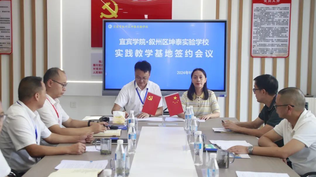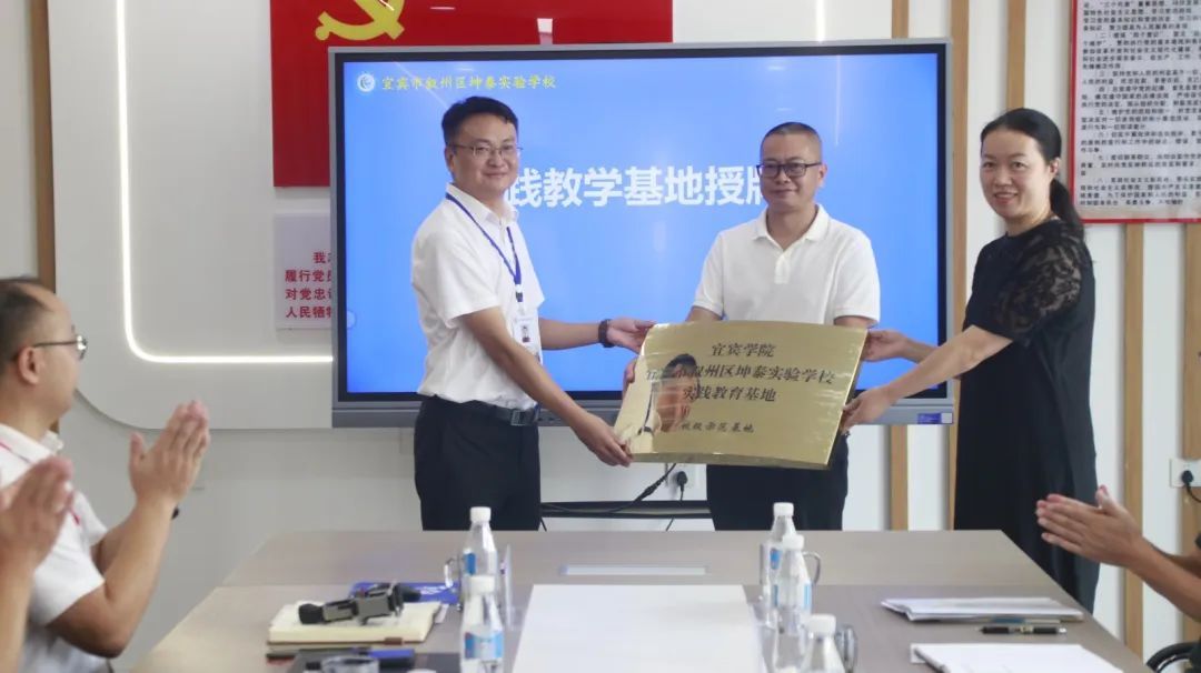 随后,双方共同签署《宜宾学院与坤泰实验学校实践教学基地建设协议书》,秦丽桦代表宜宾学院教务处向坤泰实验学校正式授牌。