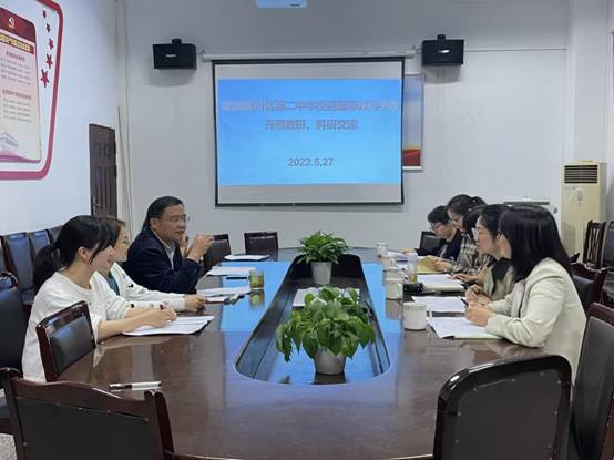 5月27日,叙州区第二中学校高中英语组一行五人来到国际教育学部开展科研教研交流活动,国际教育学部杨南翎部长、分管教学副部长赵亚玲以及大外教研室主任郑逸梅和英语教学法专任教师王璐参与了交流。
