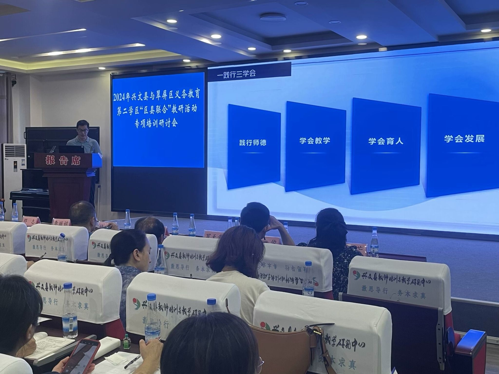 联合教研活动在兴文县师培中心五楼会议室举行;教育活动围绕教师专业素养的提升,科学研究路径与方法,“AI赋能英语教育学”、“用英语讲好中国故事”课题开题论证等的内容开展。
