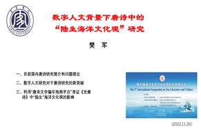 论文就数字人文技术背景下,以“唐宋文学编年地图”和“知识图谱”网为检索工具,选取多位唐代诗人为典型研究对象,通过对这些诗人的行游轨迹及其诗句作品中折射的海洋文化进行了研究,发现存在着这么一类从未见过海洋,一生均在陆地上生活的诗人,却在其诗歌中描绘了海洋文化。这种“陆生海洋文化观”的数字化挖掘和研究,有助于了解唐诗中特有的海洋文化表现方式,从而启迪在未来的研究中进一步借助数字人文技术深入研究中国文学作品中这样的“陆生海洋文化观”产生、发展和传播的规律。