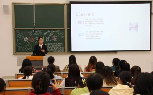 本次选拔赛以“The Chinese Path to Modernization”为题。各学部(院)初赛选拔中脱颖而出的21位选手有序登台进行演讲。选手们流利的表达将当代大学生的青春风貌展现得淋漓尽致,感染了台下每一位观众,赢得一片片热烈的掌声。比赛最后,评委代表对参赛选手们的精彩表现给予了高度肯定,也指出了美中不足的地方,鼓励同学们知难而进、力争上游,不断提高英语学习水平、讲好中国故事。在轻松愉悦的氛围中,此次比赛圆满结束。