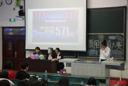 (本报讯)为了激发同学们学习英语的兴趣,增加大家对时政热点、科教兴国、文娱事件、校园生活等方面新闻的了解。外国语学院于2017年11月22日13:00在第三教学楼A座202教室举办了新闻播报大赛决赛。此次共有六组选手进入决赛,并由外教Tom老师,外国语学院学生会秘书长刘涵静,法学院陈帅担任评委对选手表现进行点评打分。