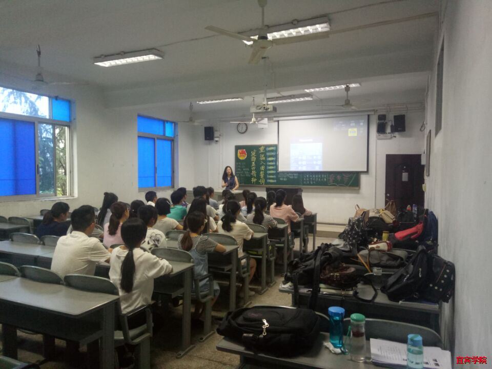 (本报讯)为弘扬五四精神,宜宾学院外国语学院于2017年5月18日在第二教学楼召开团组织活动。此次团组织生活进展十分顺利,同学们表现得十分积极。活动开始,各班级组织团员宣誓,每个班级都非常有气势,每个团员都铿锵有力,誓词响彻整个第二教学楼。宣誓过后,每个班级以“重温入团誓词,发扬五四精神”开展了活动。各班主持人先向同学们展示了与主题相关的PPT,同学们都很认真地听讲,对我们团,我们党的历史十分感兴趣。然后,各班主持人为团员放映有关中国共青团发展历史的纪录片,十分振奋人心,点燃了在场团员的爱国之心,令人热血沸腾,让我们认识到我们肩负着保卫国家的神圣使命。