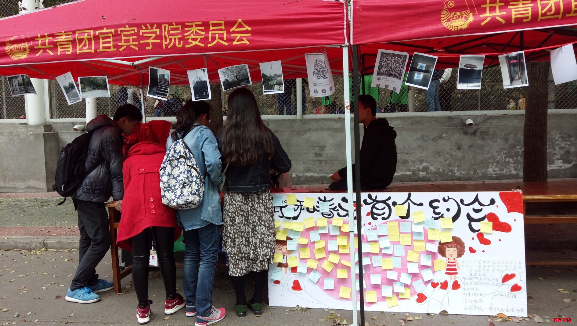 活动第一天主要是寻找校园一角和完成心愿墙。在活动处,我们有许多校园一角的相片,同学们可以找到对应的校园一角,然后照一张含有自己的相片,通过扫二维码的方式发给负责人,领取奖品。这样的活动既让同学们感受春天的美好,也让同学们感受校园的魅力。心愿墙便是将自己的小心愿写在便利贴上,并将自己的联系方式写在便利贴后,然后贴在展板上,让其他同学来帮助你实现自己的心愿。积极参与活动的同学很多,有同学写“希望有一盒巧克力”、“找个女朋友”、“帮助自己过四六级”等等。而且有的同学的愿望,也有男神来实现了。活动第二天主要是闯关游戏得奖品,游戏多样有趣,比如说吹气球、心灵手巧穿针引线、金鸡独立等等。活动第二天,参与活动的同学也很多,虽然说只是小小的游戏比赛,但是大家都是在欢歌笑语中度过的,增进了同学们之间的友谊,不管是陌生还是熟悉。
