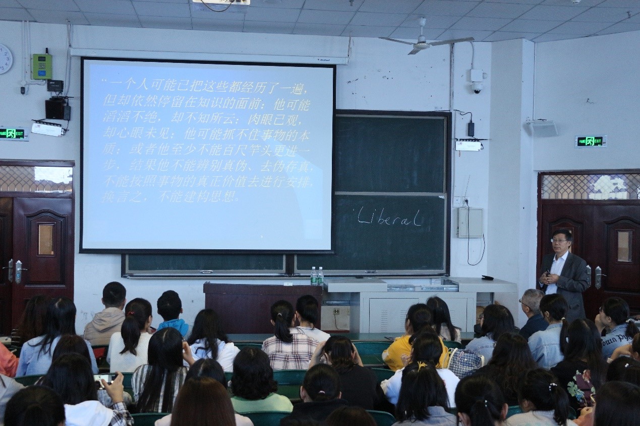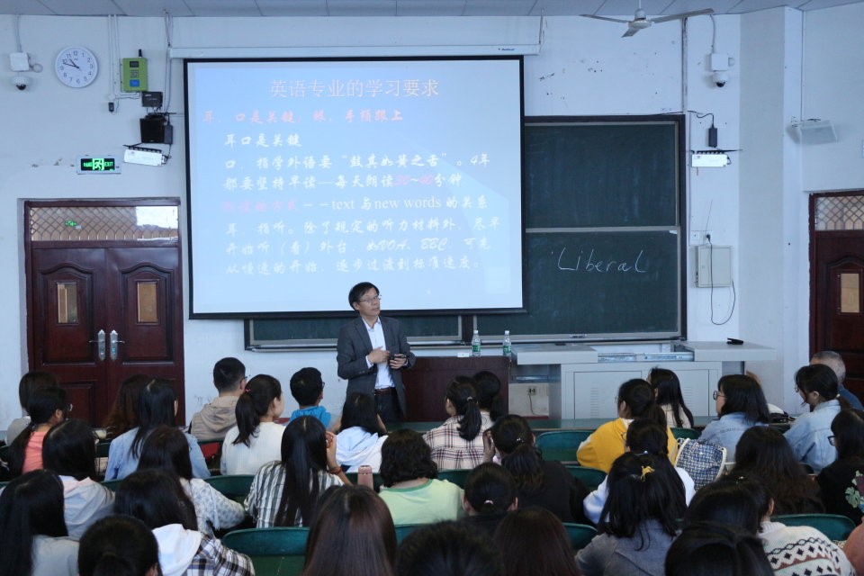 为了让英语专业同学更好地学习英语,让英语学习变得更有目的性、条理性和方法性,宜宾学院外国语学院于2019年10月18日10:20在硕勋楼A座202教室举办了以“学习与实践—英语学习方法”为主题的学术讲座。现任中央民族大学外国语学院翻译系教授的何克勇教授亲临讲座予以指导,2019级所有英语专业的学生参与了本次讲座。