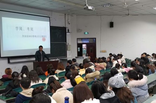 为了积极响应学校“三风”建设的号召,提高广大学生对“三风”建设必要性和重要性的认识,外国语学院2017级、2018级和2019级全体学生于2019年12月29日展开“班风、学风、考风”主题班会,本次班会由辅导员袁超、何丹丽老师主持。