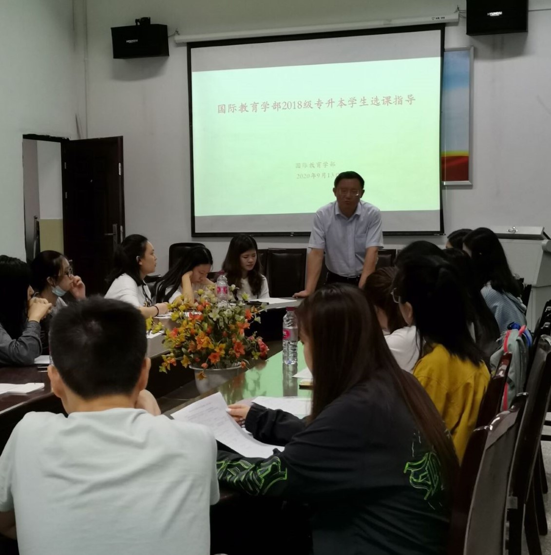 2020年9月13日,国际教育学部根据学校相关要求,分年级分班集中在三教A座202、二教513等教室开展了主题班会。班会上,各班辅导员针对“同心抗疫”“创建文明城市”以及返校期间疫情防控常态化纪律要求等方面为学生做了详细的讲解。