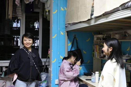 杨部长一行人走访男生宿舍,走访过程中,他亲切地询问新生们第一周的课堂学习情况,又与同学们分享了自己上大学时的宿舍生活,让同学们感到格外的亲切。辅导员魏春梅老师、何丹丽老师等走访女生宿舍,她们关心同学们学习、生活等方面的情况,并鼓励同学们积极参加大学各类活动。谈话在欢声笑语中进行,气氛十分融洽。