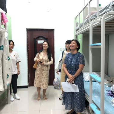 为让新生更快地适应大学生活,感受到学校浓浓的温情,学部党总支书记罗春雁,部长杨南翎及辅导员老师于2021年9月16日走访了新生宿舍14舍、10舍。