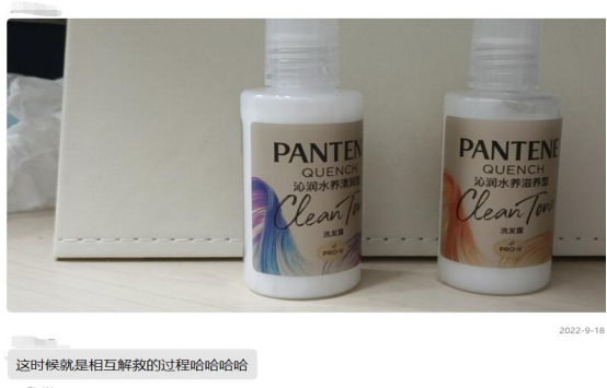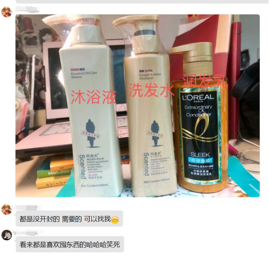 “我们寝室洗发液用完了,超市无法购买到.......。”走访老师倡议同学们之间相互救急。倡议发出后,同学们秒回,“我这里有没有开封的,下课后来宿舍拿,........”,“我这里还有小包的纸巾,需要的可以找我”.......。