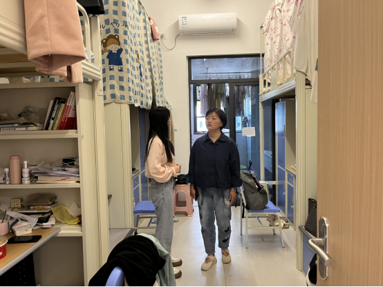 老师们还亲切地询问了同学们的五一假期安排与近期课程学习情况,了解学生思想动态,围绕思想、学习、生活状态等问题与同学们进行了深入交流,要求宿舍成员要友爱互助,树立优良班风,学风,强调五一期间出行务必注意安全第一。