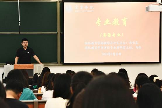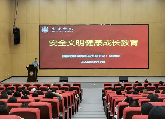 立德树人守初心,自律奋进新征程。为帮助2023级新生坚定理想信念、增强家国情怀,国际教育学部于9月10日开展了2023级新生入学教育系列活动,助力新生扣好人生第一粒扣子。本次新生入学教育系列活动主要包括:宜宾学院校史文化教育,创新创业专题培训,安全文明健康成长教育,学生第二课堂介绍,涉外安全与国际视野、专业教育以及班级教育等内容。主讲老师有:学校关工委吴开祥老师,大学科技园管理办公室代国强、凌超发,学部副部长罗红昌,学部党总支副书记林顺虎,国际交流与合作处副组织员周磊,学生办公室主任王星,教研室主任吴宦熙、高伟、黄靖莉和2023级新生辅导员。