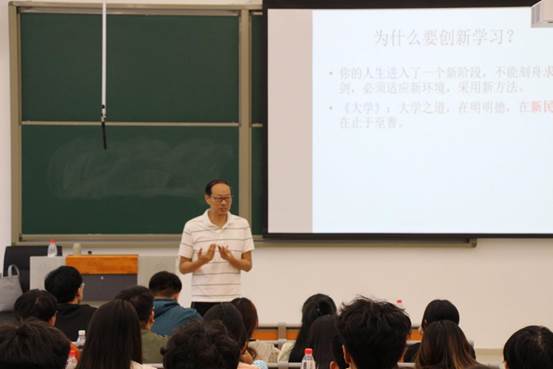 学习改变生活,创业成就未来。“创新是一个民族进步的灵魂,是一个国家兴旺发达的不竭动力”。代国强、凌超发以“杨帆起航正当时 创新创业创青春”为题,为学生们分享了大学生创新创业的思路和方法。罗红昌结合自身的学习经历,希望同学们尽快学会尽快转变身份,不要把大学念成了高四和高五的延续,要跳脱忙碌、茫然、盲目的学习状态,变被动学习为自主学习,变记忆学习为创新学习。