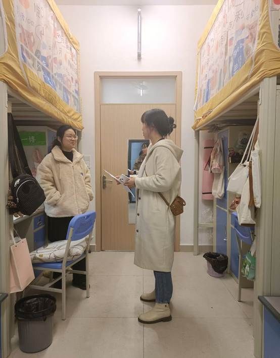 首先,老师们有序走访了各个寝室,查看学生床铺是否整洁,衣物是否收纳有序,个人用品是否摆放整齐;接着,老师们还查验了寝室地面、门窗、桌椅等是否清洁,垃圾是否及时清理;最后,老师们也检查了寝室内的电器设施是否安全、有无私拉乱接现象,消防设施是否齐备有效。在检查时,大部分寝室表现良好,干净整洁,安全意识强。但仍有部分寝室存在物品摆放杂乱、卫生清洁不到位等问题。