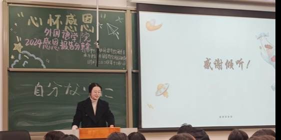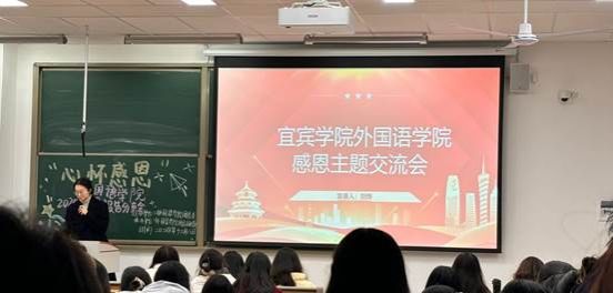 为大力弘扬知恩图报的传统美德,全方位激发同学们的学习热忱,外国语学院于2024年12月8日在宜宾学院二期公共教学楼8D209举办了以“感恩点亮心灯,励志照亮征程”为主题的感恩励志报告分享会。外国语学院2024年获资助同学参会,旨在引导广大学生将感恩之心切实转化为求学逐梦的强劲动力,收获知识硕果,迈向理想未来。